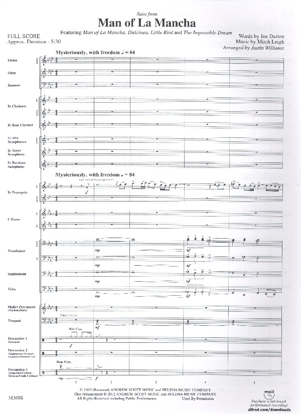 Williams, Justin, arr. from the Musical Man of La Mancha Dulcinea Little Bird The impossible Dream