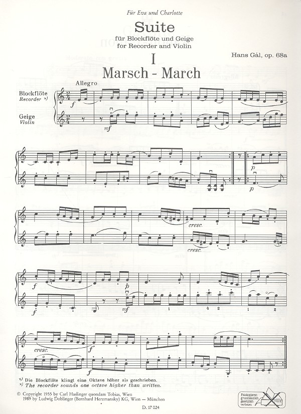 Suite op.68a für Blockflöte und Violine