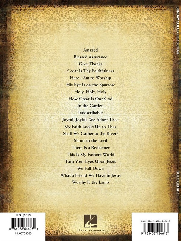 1. Give Thanks 2. In the Garden 3. Turn Your Eyes Upon Jesus 4. Worthy Is The Lamb 5. Great Is Thy Faithfulness 6. Amazed 7. Shout to the Lord 8. We Fall Down 9. Holy, Holy, Holy! Lord God Almighty 10. Here I Am To Worship Light Of The World 11. My Faith Looks Up to Thee 12. What A Friend We Have in Jesus 13. This is My Father's World 14. Blessed Assurance 15. There Is a Redeemer 16. Indescribable 17. How great is our God 18. Joyful, Joyful, We Adore Thee 19. His Eye Is on the Sparrow 20. Shall We Gather at the River?