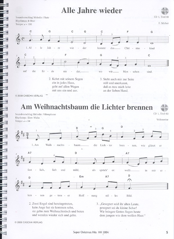 Die 50 beliebtesten Weihnachtslieder und Pop Christmas Songs Alle Jahre wieder Am Weihnachtsbaum die Lichter brennen Amen Andachtsjodler Ave Maria Es ist ein Ros entsprungen Es ist für uns eine Zeit angekommen Es wird scho' glei dumpa Freu dich Erd und Sternenzelt Fröhliche Weihnacht überall Go tell it on the Mountain Hark the Herald Angels Sing Heidschi Bumbeidschi Heiligste Nacht Herbei o ihr Gläub'gen Ich steh an deiner Krippen hier Ihr Kinderlein kommet In dulci jubilo Jingle Bells Joseph lieber Joseph mein Joy to the World Kling Glöckchen Kommet ihr Hirten Laßt uns froh und munter sein Leise rieselt der Schnee Macht hoch die Tür Maria durch ein Dornwald ging Morgen kommt der Weihnachtsmann Morgen Kinder wird's was geben O du fröhliche O Tannenbaum Schneeflöckchen Weißröckchen Still still still Stille Nacht heilige Nacht Süßer die Glocken nie klingen Tochter Zion Vom Himmel hoch da komm ich her Was soll das bedeuten Zu Betlehem geboren Do they know it's Christmas Time Driving home for Christmas Feliz Navidad Komm laß uns träumen Last Christmas Mary's Boychild Merry Christmas everyone Santa Claus is coming to Town Schöne Weihnachtszeit We wish you a merry Christmas Winter Wonderland