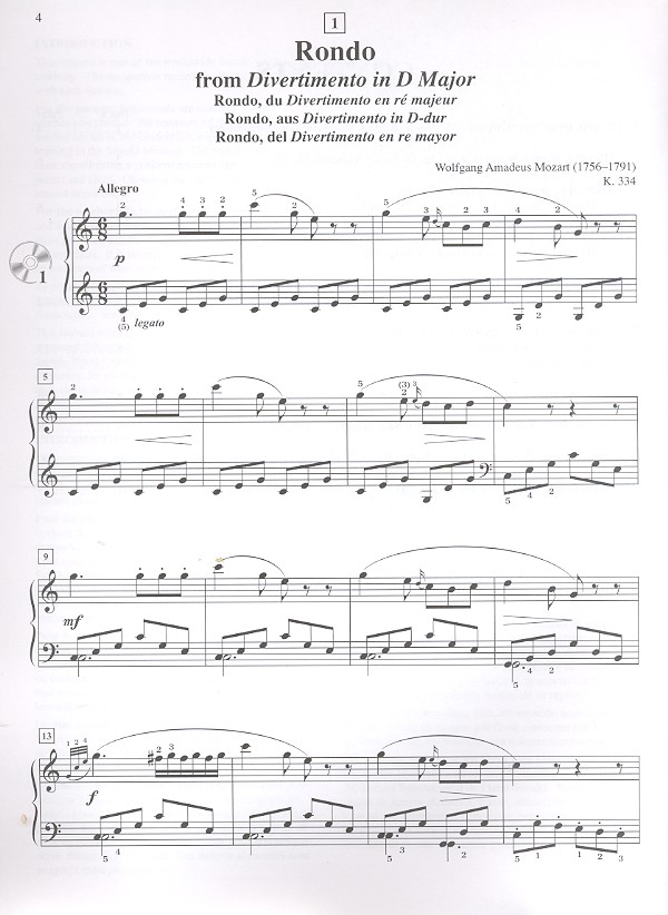 Rondo (Mozart) Minuet I (Mozart) Arabesque (Burgmüller) By the Limpid Stream (Burgmüller) Musette in D Major Sonata in G Major no.2 op.49 (Beethoven) Bagatelle no.9 op.5 (Tcherepnin) Gavotte from Suite in G Minor BWV822 (Bach) Minuets I und II BWV825 (Bach) Gigue BWV825 (Bach)