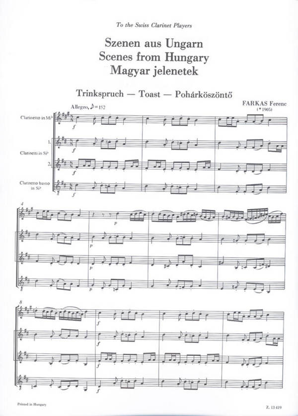 SCENES FROM HUNGARY FOR FOR CLARINETS MAGYAR JELENETEK NEGY KLARINETRA