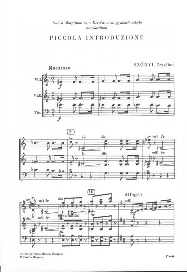 Produktinformationen "Szönyi Erzsébet Piccola introduzione"