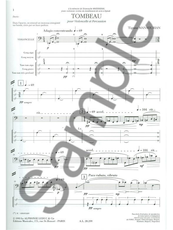 TOMBEAU POUR VIOLONCELLE ET
