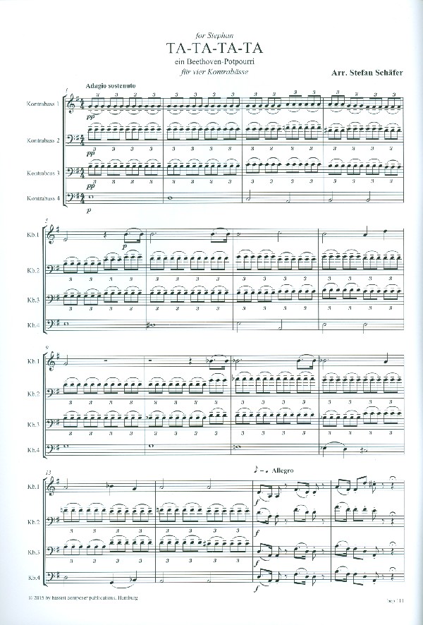 | Untertitel: | für 4 Kontrabässe Partitur und Stimmen |