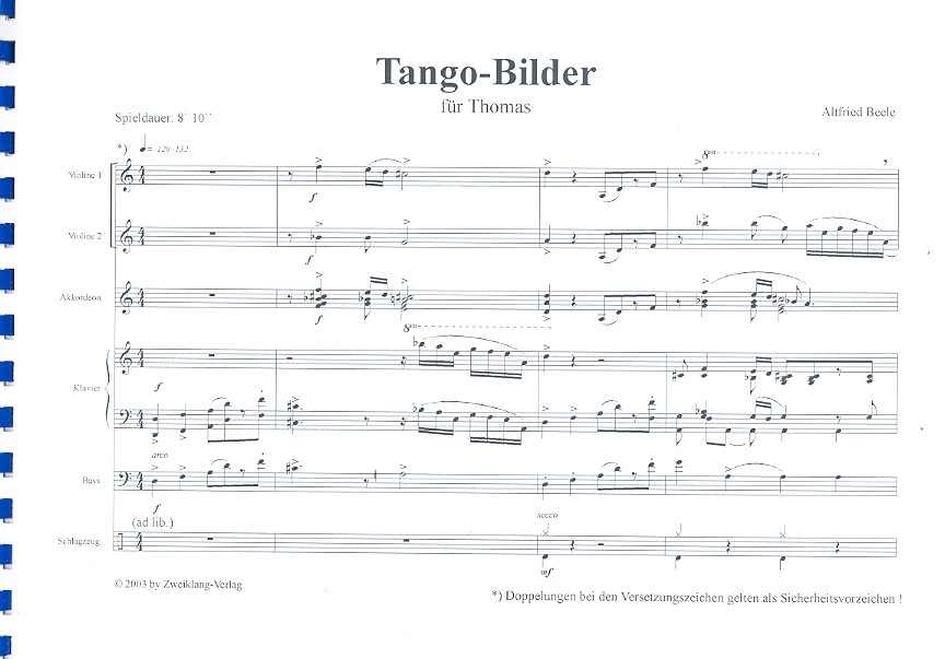 Tango-Bilder für 2 Violinen, Akkordeon,