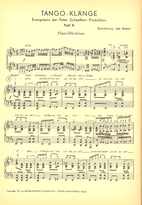 Dazer, Joe, arr. Capri-Fischer Florentinische Nächte Unter der roten Laterne von St. Pauli Südliche Nächte Egon Warum weinst du kleine Tamara Ein kleiner Akkordeonspieler Es war das letzte Mal