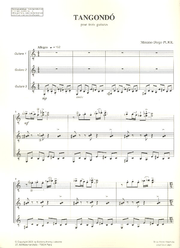 | Untertitel: | pour 3 guitares partition et parties |
