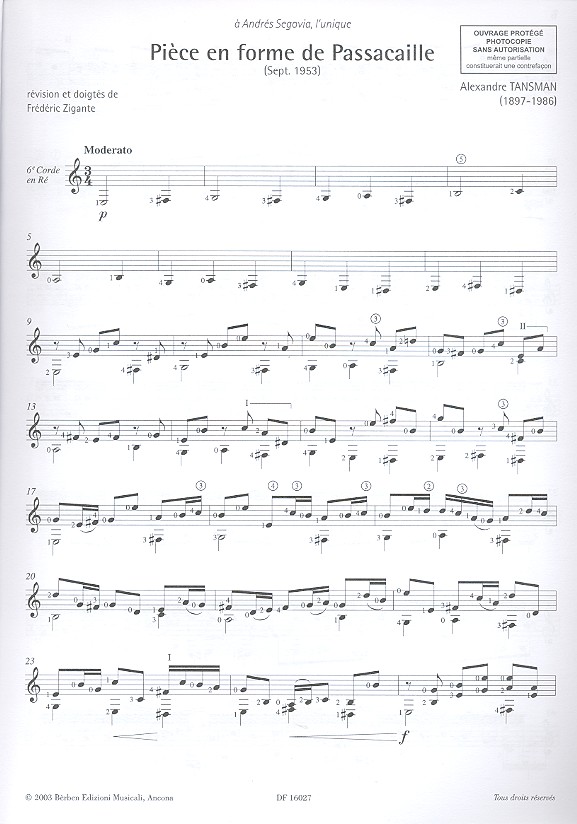 Tansman en 25 morceaux pour guitare