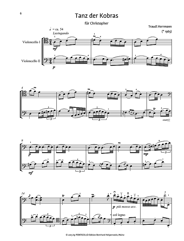 indische Laute Tambura Das Stück der Mainzer Cellistin erzählt eine Geschichte von einem Schlangenbeschwörer auf einem staubigen Dorfplatz - ohne als solche entstanden zu sein. Vielmehr ist die Geschichte ein äußeres Bild für einen inneren Vorgang: Das Auftauchen von Gedanken aus dem Nichts und das sich wieder Auflösen in reines Bewusstsein. Ein klangfreudiges Stück, das sich vor allem in der Fassung für zwei Violoncelli bestens für Unterricht und Vorspiel eignet.