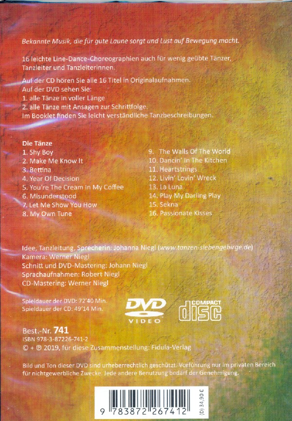 16 leichte Line-Dance Choreographien, auch für wenig geübte Tänzer Shy Boy Make Me Know It Bettina Vear Of Decision You're The Cream In My Coffee Misunderstood Let Me Show You How My Own Tune The Walls Of The World Dancin' In The Kitchen Heartstrings Livin' Lovin' Wreck La Luna Play My Darling Play Sekna Passionate Kisses