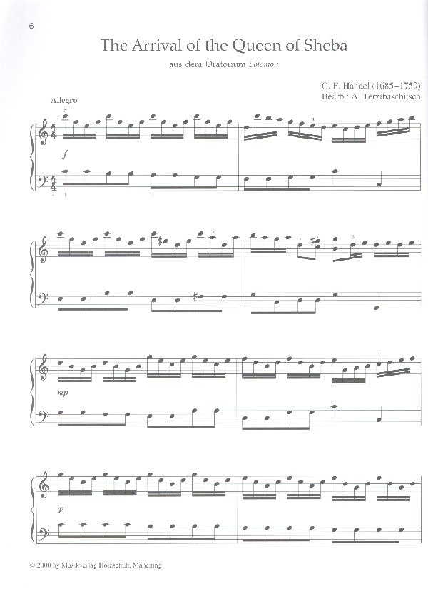 TASTENTRAEUME TERZIBASCHITSCH, A., BEARB. BACH, J.S. : JESUS BLEIBET MEINE FREUDE BERLIN, IRVING : ALWAYS BOCK, J. : WENN ICH EINMAL REICH WAER CHATSCHATURJAN : WALZER COMEDIAN HARMONISTS : ICH WOLLT ICH WAER EIN HUHN MEIN KLEINER GRUENER KAKTUS DVORAK : HUMORESKE AUS DER NEUEN WELT EILENBERG : PETERSBURGER SCHLITTENFAHRT ELGAR : POMP AND CIRCUMSTANCE FLOTOW : LETZTE ROSE GERSHWIN : SUMMER TIME GRIEG : NORWEGISCHER TANZ SOLVEIGS LIED HAENDEL : HALLELUJA LARGO THE ARRIVAL OF THE QUEEN OF SHEBA TOCHTER ZION HAYDN : STAENDCHEN HUMPERDINCK : ABENDS WILL ICH SCHLAFEN GEHN KREISLER : LIEBESFREUD LOEWE : ICH HAETT GETANZT HEUT NACHT MENDELSSOHN : HOCHZEITSMARSCH MOSZKOWSKI : SPANISCHER TANZ MOZART : DER VOGELFAENGER BIN ICH JA EINE KLEINE NACHTMUSIK (2.SATZ) MUSSORGSKI : PROMENADE PROKOFJEW : DIE MONTAGUES UND DIE CAPULETS REGER : SCHLICHTE WEISEN RUBINSTEIN : MELODIE SCHUBERT : AUF DEM WASSER ZU SINGEN GUTE NACHT SCHUMANN : VON FREMDEN LAENDERN TSCHAIKOWSKI : KLAVIERKONZERT NR.1 WALZER VERDI : TRIUMPHMARSCH JOSHUA FIT THE BATTLE ... NOBODY KNOWS THE TROUBLE AMAZING GRACE THE HOUSE OF THE RISING SUN