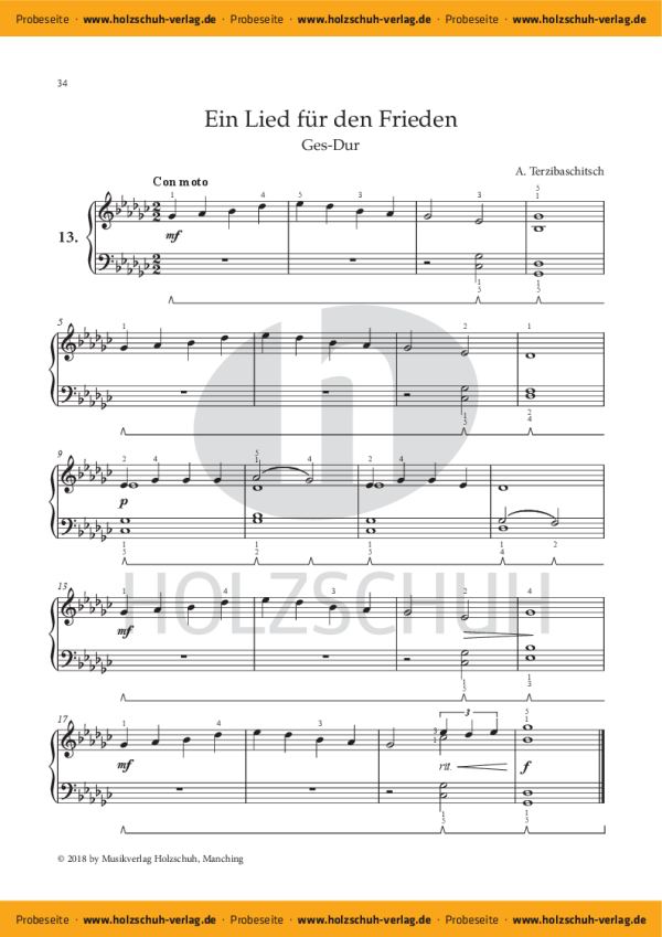 24 Klavierstücke durch den Quintenzirkel Frühlings Erwachen Albumblatt für Adele Duett Emmas Lied Humoreske Invention Mittsommer Elegie Sommerliches Träumen Sicilienne Weiße Taube Il pleure dans mon coeur Ein Lied für den Frieden Von guten Mächten Ein Lied für den Frieden Von guten Mächten Der Adler Klage und Trost Kleiner Stern Im Ungewissen Weihnachtskonzert Entschlossenheit Zuversicht Herz in Flammen Der verzauberte Garten Trauermarsch