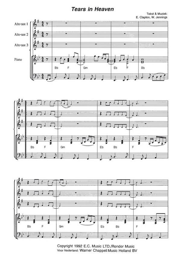 Produktinformationen "Tears in Heaven for 3 alto saxophones"