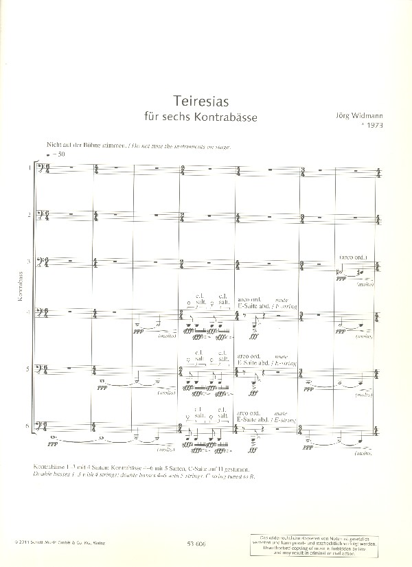 | Untertitel: | für 6 Kontrabässe Partitur und Stimmen |