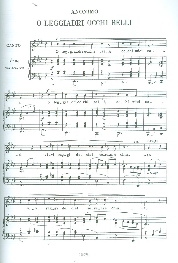O leggiadri occhi belli (Anonym) Per la gloria d'adorarvi (Bononcini) Amarilli (Caccini) Amor ch'attendi (Caccini) Sebben crudele (Caldara) Selve amiche (Caldara) Come raggio di sol (Caldara) Vittoria vittoria (Carissimi) Intorno all'idol mio (Cesti) Tu mancavi a tormentarvi (Cesti) Bel nume che adoro (Cimarosa) Vergin tutt'amor (Durante) Danza danza (Durante) Bella porta di rubini (Falconieri) O bellissimi capelli (Falconieri) Caro mio ben (Giordani) O del mio dolce ardor (Gluck) Ah mio cor schernito sei (Händel) Piangeró la sorte mia (Händel) Pur dicesti o bocca bella (Lotti) Quella fiamma che m'accende (Marcello) Lasciatemi morire (Monteverdi) Nel cor più non mi sento (Paisiello) Se tu m'ami (Pergolesi) Stizzoso mio stizzoso (Pergolesi) Se cerca se dice (Pergolesi) Se il ciel mi divide (Piccinni) Vado ben spesso cangiando loco (Rosa) Spesso vibra per su gioco (Scarlatti) O cessate di piagiarmi (Scarlatti) Toglietemi la vita ancor (Scarlatti) Se delitto è l'adorarti (Scarlatti) Sento nel core (Scarlatti) Su venite a consiglio (Scarlatti) Gia il sole dal Gange (Scarlatti) Sentirsi dire (Vinci) Un certo non so che (Vivaldi)
