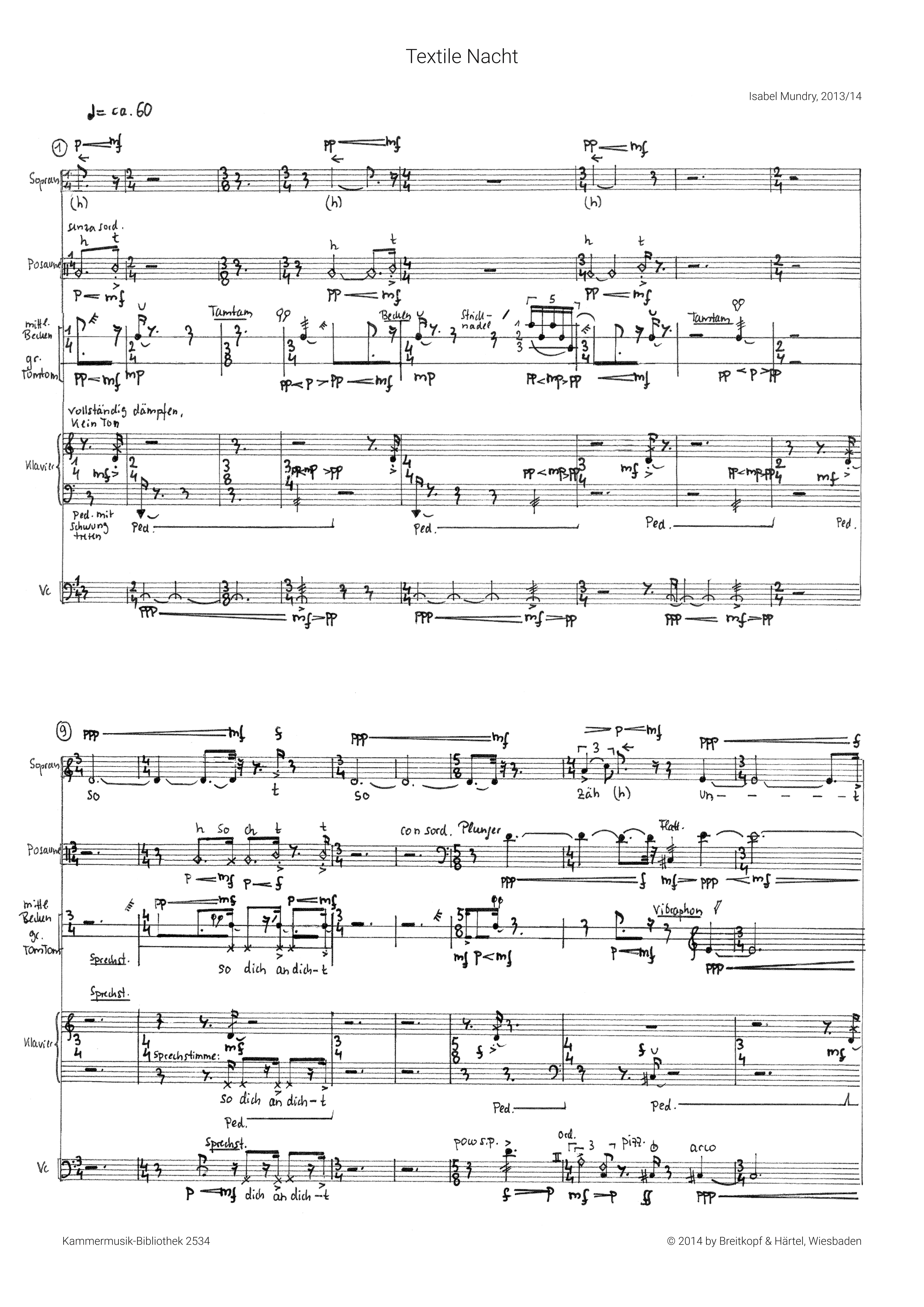 | Untertitel: | für Sopran, Posaune, Schlagzeug, Violoncello und Klavier Partitur |