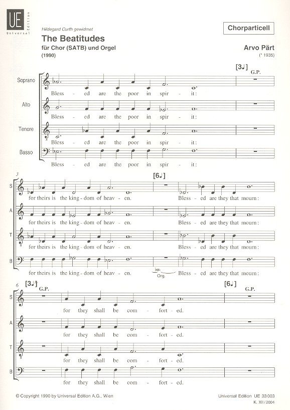 | Untertitel: | für gem Chor (Solisten) und Orgel Chorpartitur |