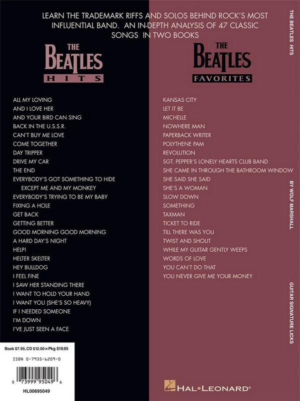 All my loving And i love her And your bird can sing Back in the u.s.s.r. Can't buy me love Come together Day tripper Drive my car The end Everybody's got something to hide exept me and Everybody's trying to be my baby Fixing a hole Get back Getting better Good morning good morning A hard day's night Help! Helter skelter Hey bulldog I feel fine I saw her standing there I want to hold your hand I want you (she's so heavy) If i needed someone I'm down I've just seen a face Guitar signature licks The beatles hits Hits Wolf marshall Marshall, wolf