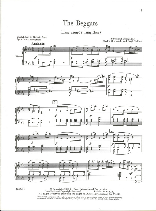 4 Tonadillas no.1 Surinach, Carlos, ed arr. Subira, Jose, ed arr. Los ciegos fingidos
