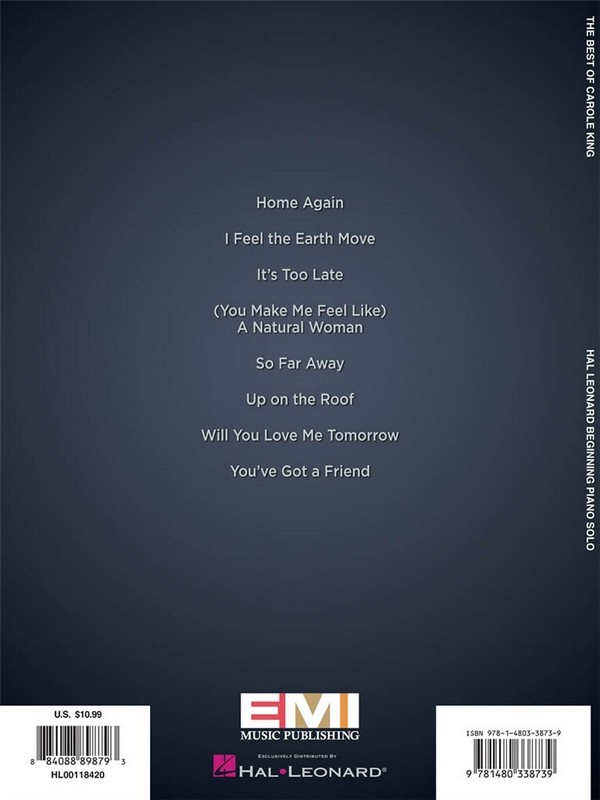 (You Make Me Feel Like) A Natural Woman Home Again I Feel The Earth Move It's Too Late So Far Away Up On The Roof Will You Love Me Tomorrow (Will You Still Love Me Tomorrow) You've Got A Friend