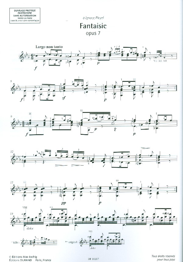 Zigante, Frédéric, ed 26 Pieces Fantasias and variations: Fantaisie op.7 Variations brillantes (sur un air favori de Mozart de l'opéra La Flûte enchantée op.9) Introduction, thème et variations (sur l?air Marlborough op.28) Septième Fantaisie et variations brillantes (sur deux airs favoris connus op.30) Fantaisie élégiaque op.59 Sonatas: Grand Solo op.14 Deuxième Grande Sonate op.25. Grande Sonate op.22 Short works: Andantino (extrait de Six Divertissements op.2,3) Sicilienne (extrait de Six Divertissements op.2,6) Menuet (extrait de Thème varié suivi d'un Menuet op.3) Andantino (extrait de Six Divertissements op.2,3) Andante largo (extrait de Six Petites Pièces très faciles op.5,5) Sicilienne (extraite de Six Divertissements op.2,6) Douze Menuets (extrait de Deux Thèmes variés et Douze Menuets op.11) Menuet (extrait de Thème varié suivi d'un Menuet op.3) Menuet (extrait de Huit Petites Pièces op.24,1) Andante largo (extrait de Six Petites Pièces très faciles op.5,5) Rondeau (extrait de Est-ce bien ça op.48,6) Douze Menuets (extraits de Deux Thèmes variés et Douze Menuets op.11) Menuet (extrait de Huit Petites Pièces op.24,1) Rondeau (extrait de Est-ce bien ça op.48,6)