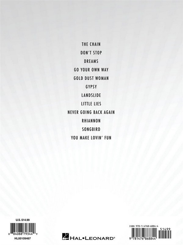 The Chain Don't stop Dreams Go your own Way Gold Dust Woman Gypsy Landslide Little Lies Never going back again Rhiannon Songbird You make Lovin' Fun