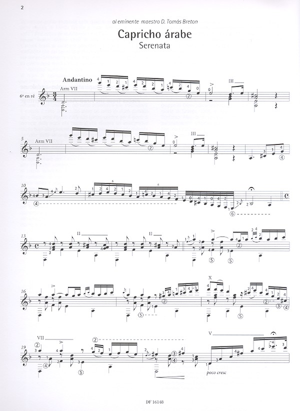 Zigante, Frédéric, ed 33 Pieces Capricho árabe (Serenata) Recuerdos de la Alhambra Danza mora Lágrima (Preludio) Preludios (1-7) Endecha (Preludio) Alborada (Capricho) Adelita (Mazurka) Marieta! (Mazurka) Sueño (Mazurka) Mazurka Gran vals Las dos hermanitas (Dos valses) El columpio (Canción de cuna) Rosita (Polka) Pavana (al estilo antiguo) Maria (Gavota) Minuetto Estudio en forma de minuetto Sueño (Estudio de trémolo) La mariposa Estudio de velocidad Estudio sobre un tema de Bach Estudio brillante de Alard La cartagenera Í Sobre temas populares murcianos (J. Arcas Í F. Tárrega) Jota aragonesa (J. Arcas Í F. Tárrega) El carnaval de Venecia Í Grandes variaciones (F. Tárrega Í S. García)