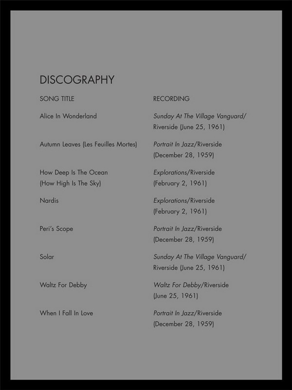 TRIO THE BILL EVANS TRIO VOL:1 LAFARO, SCOTT, BASSARR. MOTIAN, PAUL, DRUMSARR. ALICE IN WONDERLAND AUTUMN LEAVES LES FEUILLES MORTES HOW DEEP IS HE OCEAN HOW HIGH IS THE SKY NARDIS PERI'S SCOPE SOLAR WALTZ FOR DEBBY WHEN I FALL IN LOVE