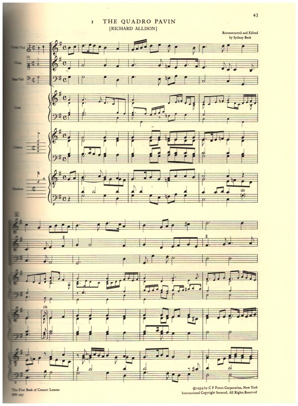 Beck, Sydney, ed Allison, Richard The Quadro Pavin Allison, Richard Galliard to the Quadro Pavin Allison, Richard De La Tromba Pavin Dowland, John Captaine Pipers Pavin (Komponist nicht gesichert) Dowland, John Galliard to Captaine Pipers Pavin (Komponist nicht gesichert) Dowland, John Galliard Can She Excuse (Komponist nichtgesichert) Dowland, John Lachrimae Pavin (Komponist nicht gesichert) Phillips, Peter Phillips Pavin (Komponist nicht gesichert) Phillips, Peter Galliard to Phillips Pavin (Komponist nicht gesichert) Morley, Thomas The Frog Galliard (Komponist nicht gesichert) Allison, Richard Allisons Knell Allison, Richard Gofrom my Window Strogers, Nicholas In Nomine Pavin (Komponist nicht gesichert) Byrd, William My Lord ofOxenfords Maske (Komponist nicht gesichert) Byrd, William Mounsiers Almaine (Komponist nicht gesichert) MichillsGalliard (Komponist nicht gesichert) Morley, Thomas Joyne Hands Morley, Thomas Balowe (Komponist nichtgesichert) Morley, Thomas O Mistresse Mine (Komponist nicht gesichert) Morley, Thomas Sola Soletta(Komponist nicht gesichert) Morley, Thomas Lavolto (Komponist nicht gesichert) Morley, Thomas La Coranto(Komponist nicht gesichert) Morley, Thomas The Lord Souches Maske (Komponist nicht gesichert) Allison, Richard The Batcherlars Delight Allison, Richard Responce Pavin (Komponist nicht gesichert)