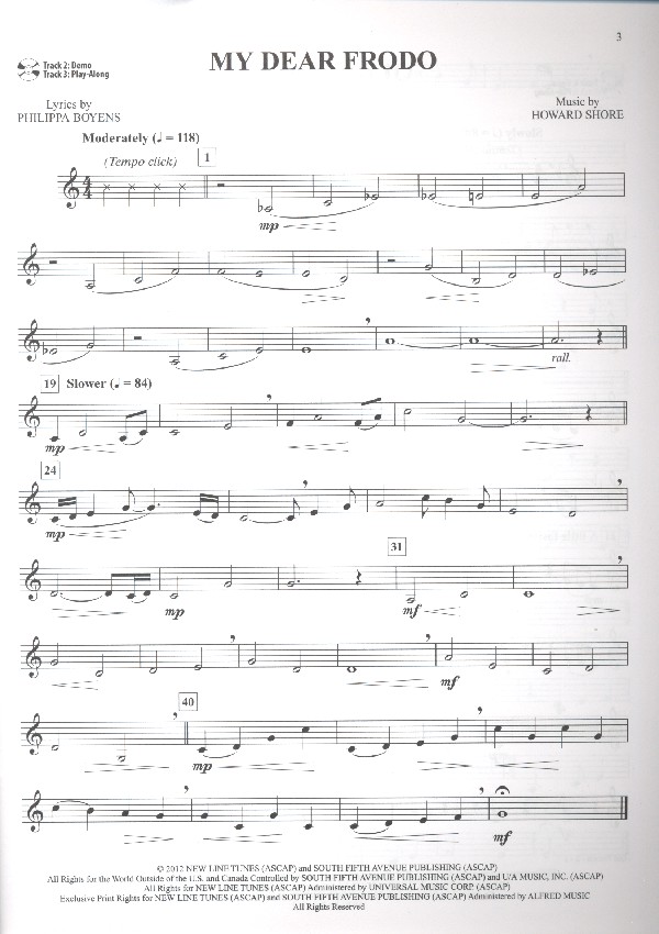 Instrumental Solos A Good Omen A Very Respectable Hobbit Axe or Sword? Bard and Family (aus Thrice Welcome) Beorn (aus Wilderland) Beyond the Forest Dreaming of Bag End Erebor Erebor (aus The Quest for Erebor) Feast of Starlight Girion and Bard (aus Girion, Lord of Dale) House of Durin (aus In the Shadow of the Mountain) I See Fire Ironfoot Lake-town (aus Thrice Welcome) Mithril My Dear Frodo Old Friends Smaug Son of Durin Song of the lonely Mountain The Adventure begins The Dwarf Lords The Gathering of the Clouds The last Goodbye The Return Journey The Woodland Realm Warg-Scouts