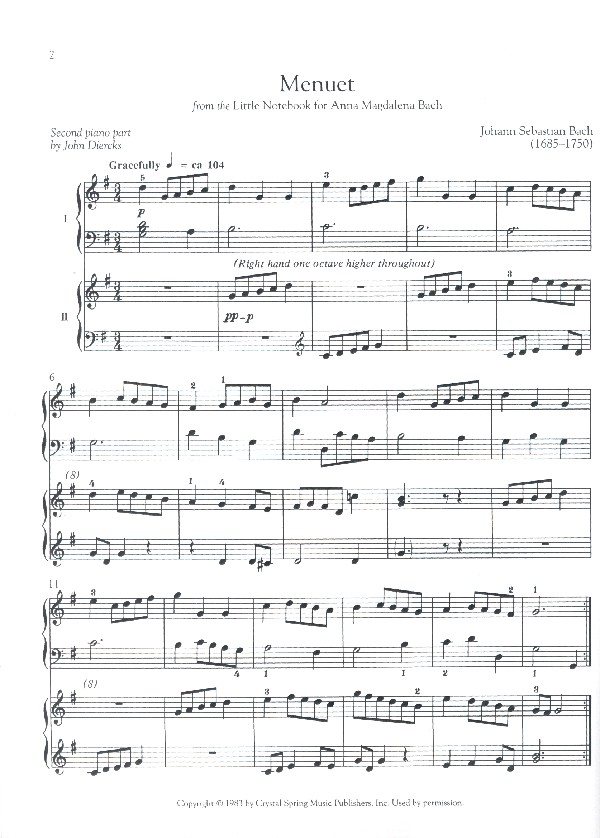 Menuet (Bach) Two Ländler (Mozart) Sonatina (Clementi) Two Stephen Foster Songs Rondo all'ungharese (Haydn) Russian Sailors' Dance (Glière) Meet Frankie and Johnny (Agay) Liebesfreud (Kreisler) Music Box Rag Chassidie round Dance (Agay) Chit-chat Polka (Strauss)