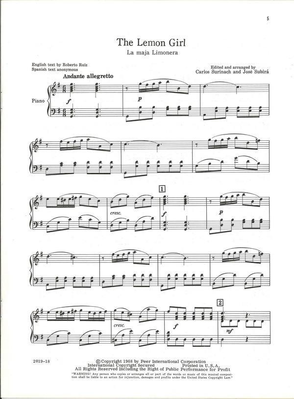 4 Tonadillas no.4 Surinach, Carlos, ed arr. Subira, Jose, ed arr. La maja limonera