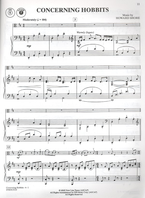 The fellowship of the ring : The prophecy In dreams Concerning hobbits Many meetings The black rider The two towers : Gollum's song Rohan Evenstar Forth Eorlingas The return of the King : Into the west Steward of Gondor Minas Tirith Herr der Ringe