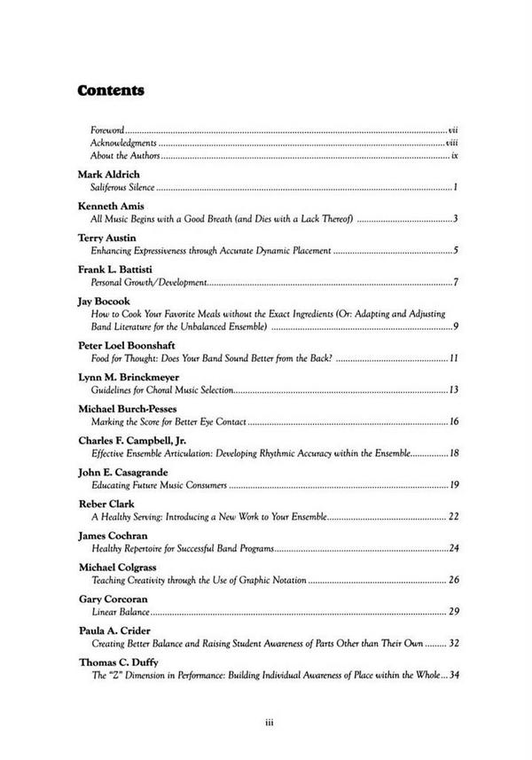 A stimulating collection of unique concepts on teaching and conducting by 57 of today's most outstanding music educators. Contains to-the-point, thought-provoking ideas proven successful by master teacher-conductors. Problemsolving tips, philosophical concepts and ensemble-building skills all in one easy-to-read collection. An ideal source of exciting strategies for all levels of performance ensembles. Proceeds from the sale of this book go to TheAmerican Music Conference.