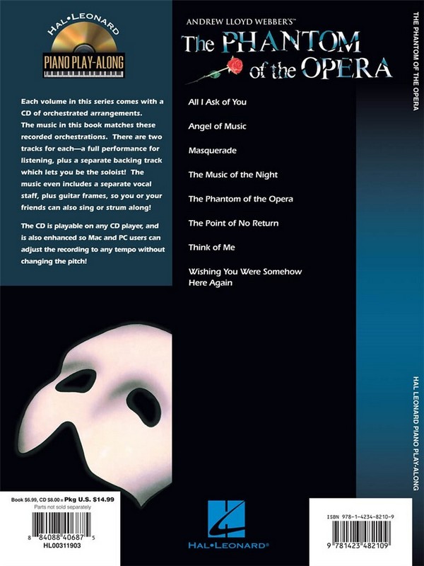 Play 8 Songs with Notation ad Sound-alike CD Tracks All I Ask of You Angel of Music Masquerade The Music of the Night The Phantom of the Opera The Point of No Return Think of Me Wishing You Were Somehow Here Again