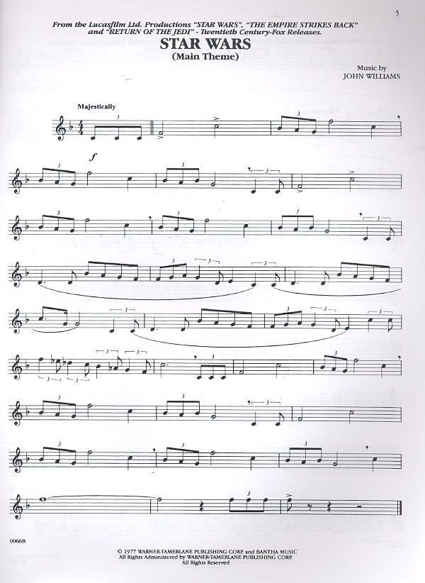 Star Wars : Star Wars (Main Theme) Cantina Band Ben's Death The Fighter Attack Princess Leia's Theme The Throne Room The Empire strikes back : Han Solo and the Princess The Imperial March Yoda's Theme May the Force be with you Returb of the Jedi : Luke and Leia Parade of the Ewoks The Emperor arrives Victory Celebration Jedi rocks