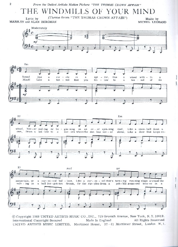 Bergman, Marilyn, lyrics Bergman, Alan, lyrics Theme from The Thomas Crown Affair