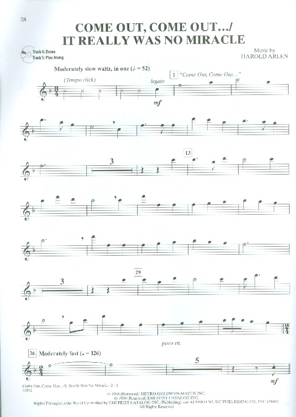 Instrumental Playalong 70th Anniversary Edition Instrumental Solos Over the Rainbow Come out, Come out it really was no Miracle Ding Dong the Witch is dead The Lullaby League - The Lollipop Guild - We Welcome you to Munchkinland Follow the yellow Brick Road - We're off to see the Wizard If I only had a Brain Optimistic Voices The merry old Land of Oz The Jitterbug If I were King of the Forest