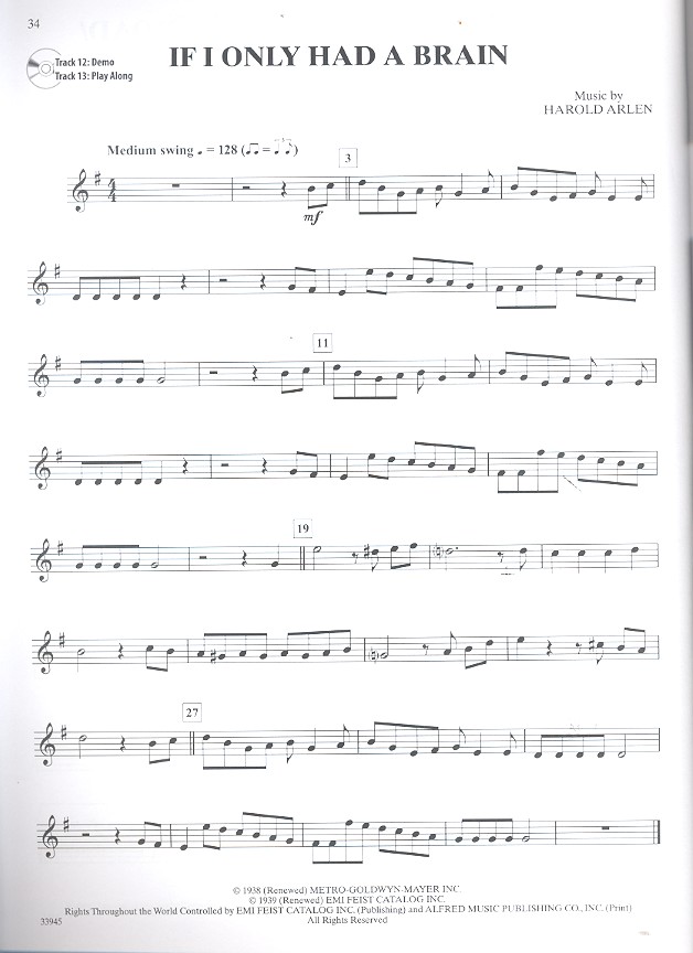 Instrumental Playalong 70th Anniversary Edition Instrumental Solos Over the Rainbow Come out, Come out it really was no Miracle Ding Dong the Witch is dead The Lullaby League - The Lollipop Guild - We Welcome you to Munchkinland Follow the yellow Brick Road - We're off to see the Wizard If I only had a Brain Optimistic Voices The merry old Land of Oz The Jitterbug If I were King of the Forest