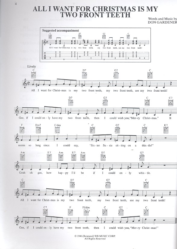 All I want for Christmas is my two Front Teeth Angels from the Realms of Glory Angels we have heard on high As lately we watched Auld Lang Syne Away in a Manger The Babe A Babe is born in Bethlehem The Bells of Christmas The Boar's Head Carol Born is He, this holy Child Bright and Joyful is the Morn Bring a Torch, Jeanette, Isabella Carol of the Birds A Child this Day is born Christ was born on Christmas Day Christmas in Killarney Christmas in the City Christmas Waltz The Coventry Carol Dance of the Sugar-Plum Fairy Deck the Hall Emmanuel The first Noel Frosty the Snowman Gesù Bambino (The infant Jesus) Go tell it on the Mountain God rest ye merry Gentlemen Good Christian Men rejoice Good King Wenceslas A great and mighty Wonder Grown-up Christmas List Hark the Herald Angels sing Have yourself a merry little Christmas Here we come A-Wassailing The Holly and the Ivy Holy Night peaceful Night (There's no Place like) Home for the Holidays Hush my Babe lie still and slumber I heard the Bells on Christmas Day I saw three Ships I'll be Home for Christmas In a Christmas Mood It came upon the Midnight clear It must have been the Mistletoe It's Christmas in New York It's the most wonderful Time of the Year Jingle Bell rock Jingle Bells Jolly old Saint Nicholas Joy to the World Let it snow let it snow let it snow Let's have an old fashioned Christmas The little Drummer Boy March of the Toys Mary had a Baby Nestor, the long-eared Christmas Donkey Noel Noel Nuttin' for Christmas O Christmas Tree (O Tannenbaum) O come all ye faithful (Adeste Fideles) O come, little Children O come o come Emmanuel O holy Night O little Town of Bethlehem On Christmas Night all Christians sing Once in Royal David's City Patapan Santa Claus is comin' to Town Silent Night Simple Gifts Sleigh Ride Stand beneath the Mistletoe Star of the East Suzy Snowflake There is no Christmas like a Home Christmas The twelve Days of Christmas Ukrainian Carol (Carol of the Bells= Up on the Housetop We three Kings of Orient are We wish you a merry Christmas What Child is this Winter Wonderland You're mean one, Mr Grinch Angels we have heard on high Ave Maria Canon in D (Pachelbel's Canon) Deck the Hall God rest ye merry, Gentlemen Grandma got run over by a Reindeer Greensleeves Have yourself a merry little Christmas It came upon the Midnight clear Jesu, Joy of Man's Desiring Jingle Bells Joy to the World The little Drummer Boy O Christmas Tree SIlent Night We three Kings of Orient ate What Child is this