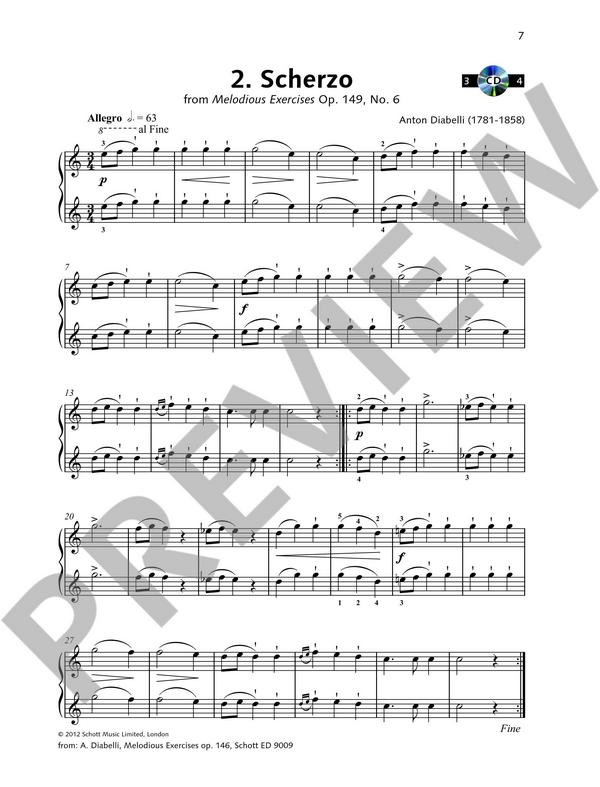 Heumann, Hans-Günter, arr. The Musical Children's Friend op.87,35 (Wohlfahrt) Scherzo op.149,6 (Diabelli) Rock It (Heumann) Melodious Exercise op.149,4 (Diabelli) German Dance (Beethoven) Ländler No.3 (Mozart) Little Piece No.1 (Bruckner) Go Down Moses (Traditional/Spiritual) Fairy Tale op.98,1 (Gretchaninoff) Lascia ch'io pianga (Händel) Wade in the Water (Traditional Spiritual) Ländler No.1 (Schubert) Mexican Hat Dance (Mexican Folk Song) Allegro (Vanhal) House of the Rising Sun (Traditional) Alla turca op.149,26 (Diabelli) Peasant Dance op.211,17 (Gurlitt) Boogie Piano (Heumann) Allegro op.149,28 (Diabelli) Triumphal March (Verdi) The Easy Winners (Joplin) Clarinet Concerto (Mozart)