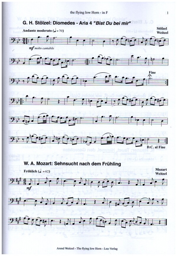 26 Greats for really low Horn Der Zauber großartiger Melodien liegt fur mich darin, dass sie einem dieses erhabene Gefuhlder Schwerelosigkeit schenken können: es ist auf einmal so, als wurde man schweben und könnte wie ein Adler dahinsegeln! Mit dieser Sammlung möchte ich diesen Genuss auch fur mein geliebtes Zweitinstrument ermöglichen: das tiefe Horn. For me, the marvel of great melodies is their ability to create a feeling ofweightlessness: the sudden sensation of floating on air, or soaring like an eagle! With this collection I hope to provide this pleasure for my beloved second instrument: the low horn. Arend Weitzel, August 2021