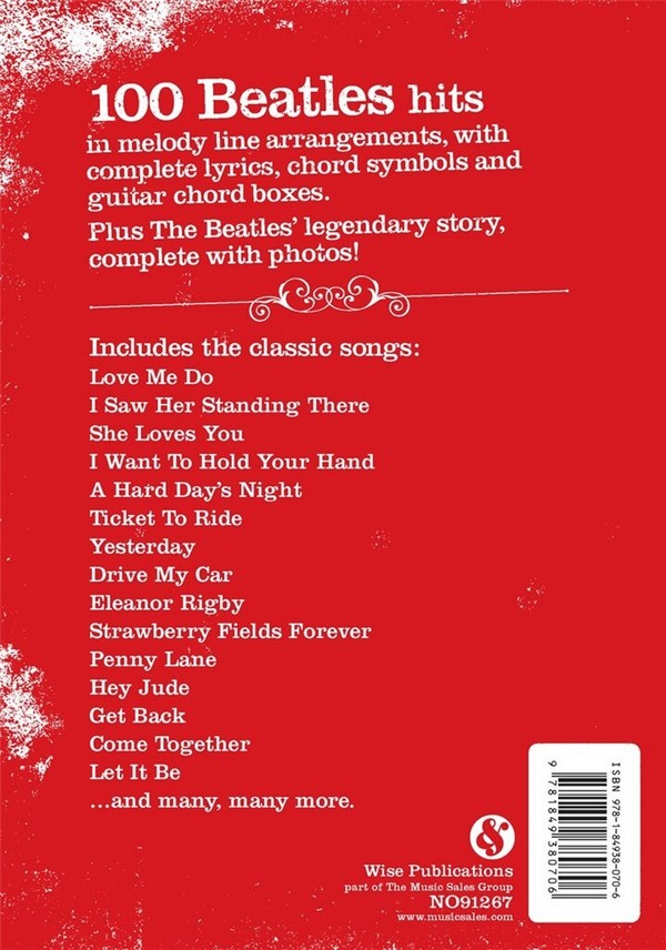100 classic Songs Love me do I saw her standing there Shelove syou I want to hold your Hand A hard Day's Night Ticket to ride Yesterday Drive my Car Eleanor Rigby Strawberry Fields forever Penny Lane Hey Jude Get back Come together Let it be and many more