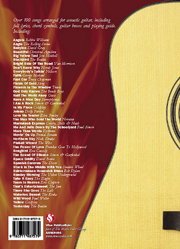 THE AIR THAT I BREATHE ALONE AGAIN OR AMERICAN PIE ANGELS ANGIE BABY CAN I HOLD YOU BABYLON BACK TO YOU BEAUTIFUL BIG YELLOW TAXI BLACKBIRD BRIGHT SIDE OF THE ROAD BYE BYE LOVE CATCH THE WIND CALIFORNIA DREAMIN' CHELSEA HOTEL NR.2 CHIMES OF FREEDOM COME PICK ME UP CONSTANT CRAVING CRAZY DON'T KNOW WHY ENGLISH ROSE EVERYBODY'S TALKING FAITH FAST CAR FIELDS OF GOLD FLOWERS IN THE WINDOW FOR WHAT IT'S WORTH FOREVER YOUNG FUNNY HOW TIME SLIPS AWAY GIVE A LITTLE BIT GOD ONLY KNOWS HALF THE WORLD AWAY HAVE A NICE DAY I AM A ROCK IF YOU COULD READ MY MIND I'M FREE IN BETWEEN DAYS IN MY LIFE IN MY PLACE IRONIC JOLENE KILLING ME SOFTLY WITH HIS SONG LADY D'ARBANVILLE LET IT GROW LIGHT MY FIRE LINGER LITTLE BY LITTLE A LITTLE RESPECT LOST CAUSE LOVE AND AFFECTION LOVE ME DO LOVE ME TENDER MAGGIE MAY MAKE ME SMILE THE MAN WHO SOLD THE WORLD MARRAKESH EXPRESS MARTHA'S HARBOUR ME AND JULIO DOWN BY THE SCHOOLYARD MMM MMM MMM MMM MORE THAN WORDS MOVIN' ON UP A NEW ENGLAND NORTH COUNTRY BOY NORTHERN SKY NOT FADE AWAY NOTHING ELSE MATTERS NOTHING EVER HAPPENS ONE WAY PERFECT PINBALL WIZARD THE POWER OF LOVE REDEMPTION SONG ROMEO AND JULIET RUBY DON'T TAKE YOUR LOVE TO TOWN RUNAWAY SHAPE OF MY HEART SOMETHIN' STUPID SONGBIRD THE SOUND OF SILENCE SPACE ODDITY SPANISH CARAVAN STAY STREETS OF LONDON STRONG ENOUGH STUCK IN THE MIDDLE WITH YOU SUBTERRANEAN HOMESICK BLUES SUNDAY MORNING SUNRISE TAKE IT EASY TEARS IN HEAVEN THAT'S ENTERTAINMENT THERE SHE GOES TORN WANTED DEAD OR ALIVE WATERLOO SUNSET THE WEIGHT WHEREVER YOU WILL GO WHY DOES IT ALWAYS RAIN ON ME WICHITA LINEMAN WILD WOOD WILD WORLDWONDERFUL LIFE WONDERWALL WOODSTOCK YELLOW YESTERDAY YOU CHEATIN' HEART