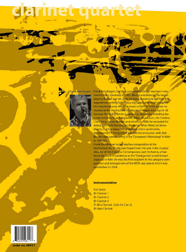 | Untertitel: | for 4 clarinets (B/B/ES/Bass) score and parts |