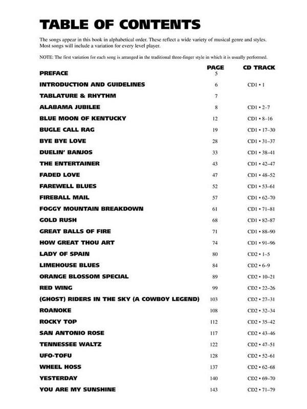 Davis, Janet, ed Alabama jubilee Blue moon of kentucky Bugle Call Rag Bye bye Love Duelin' Banjos The Entertainer Faded Love Farewell Blues Fireball Mail Foggy Mountain Breakdown Gold Rush Great Balls of Fire How great thou Art Lady of Spain Limehouse Blues Orange Blossom Special Red Wing Riders in the Sky Ghostriders in the Sky Roanoke Rocky Top San Antonio Rose Tennessee Waltz Ufo-Tofu Wheel Hoss Yesterday You are my Sunshine