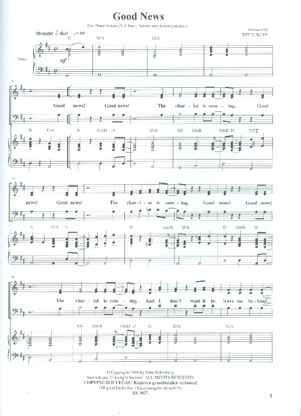 Famous Gospels and Spirituals Amazing Grace Amen Can the Circle be unbroken Ev'ry Time Ii feel the Spirit Faith of our Fathers Freedom is coming Good News His eye is on the Sparrow Hush Jesus on the Mainline My Soul is a Witness for my Lord Oh happy Day Oh Mary don't you weep Pass me not This little Light of Mine What a Friend When the Saints