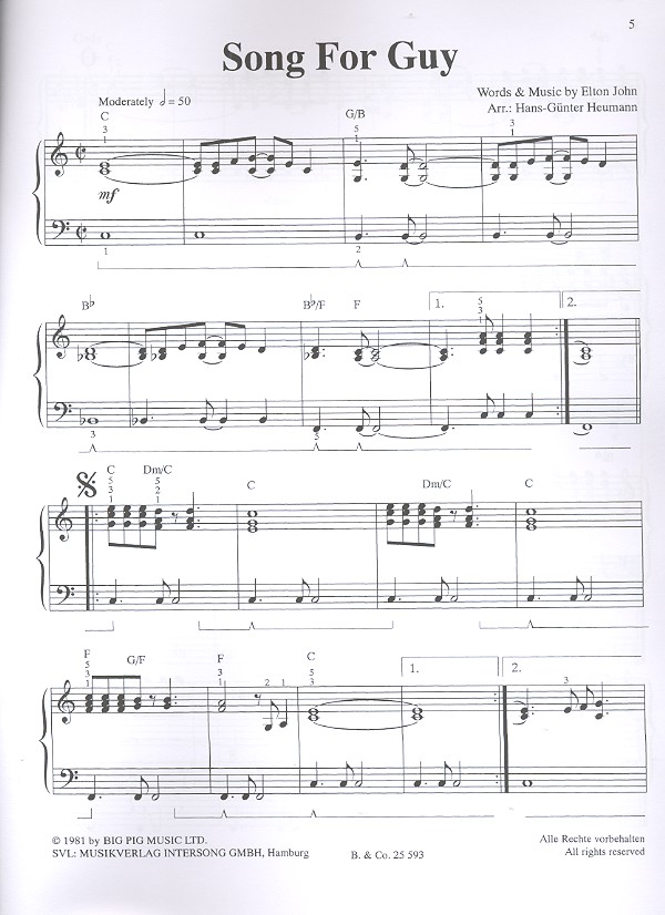 Heumann, Hans-Guenter, ed Candle in the Wind Crocodile Rock Your Song Song for Guy Can you feel the Love tonight Daniel Goodbye yellow Brick Road Rocket Man Don't let the Sun go down on me Someone saved my Life tonight