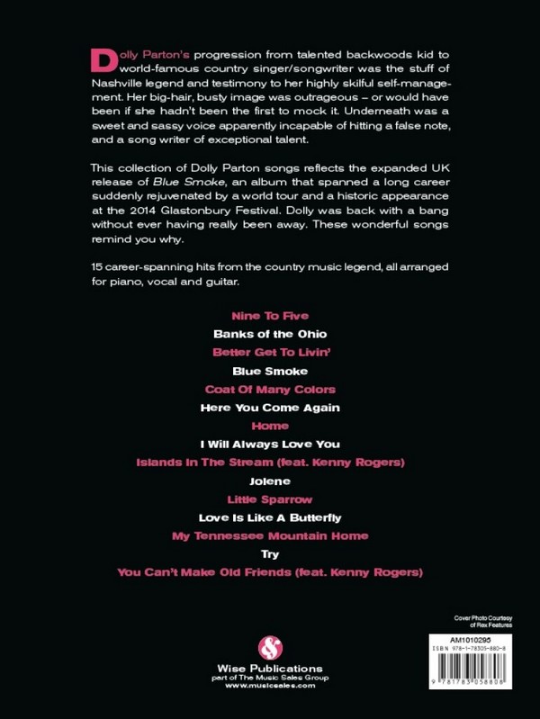 15 Career-spanning Hits from the Country Music Legend Nine To Five Banks Of The Ohio Better Get To Livin' Blue Smoke Coat Of Many Colors Here You Come Again Home I Will Always Love You Islands In The Stream (feat. Kenny Rogers) Jolene Little Sparrow Love Is Like A Butterfly My Tennessee Mountain Home Try You Can't Make Old Friends (feat. Kenny Rogers)